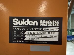 <スイデン>パルスジェット式集塵機 SDC-L3700 BPC 3.7kW 吸引口径Φ250mm お問合せ番号 250926Y003 管理番号 250926Y003 価格 内容 ・メーカー:スイデン ・商品名:パルスジェット式集塵機 ・型番:SDC-L3700 BPC ・電源:三相200 V ・周波数:50 Hz ・動力:3.7 kW ・基準風量:40 m3/min ・フィルタ本数:9 本(3本×3列) ・粉塵払落し方式:パルスジェット式 ・吸引口径:Φ250 mm ・機械重量:400 kg ・機械寸法:W1250×D920×H2700 mm ★価格交渉可能です!お気軽にお問合せください! 状態 ・中古品 ・吸引/排出動作確認済み ・パルスジェット動作未確認 ・ダストシューターなし ・現状渡し ・現地確認可 ・試運転可 ・運搬については別途ご相談 掲載日 2025年11月25日 保管場所 静岡県