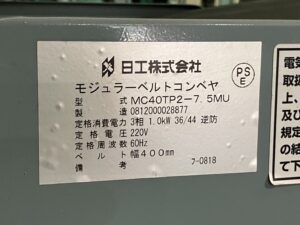 ■新古品■<日工>モジュラーベルトコンベヤ MC40TP2-7.5MU 三相1.0kW 60Hz
