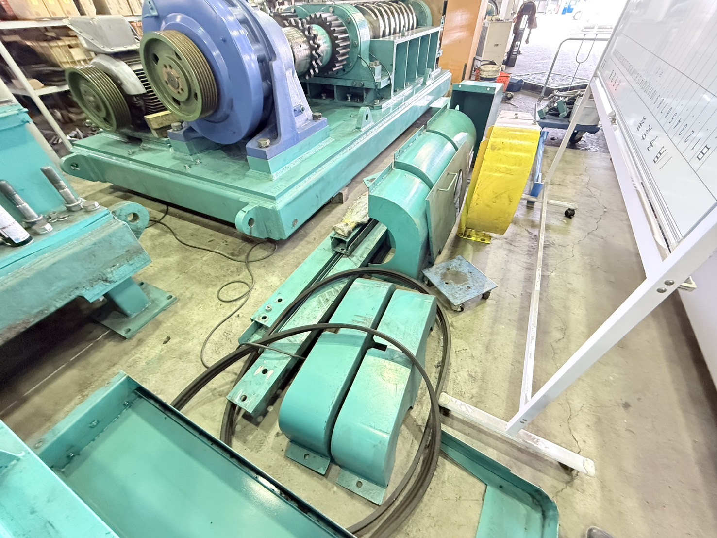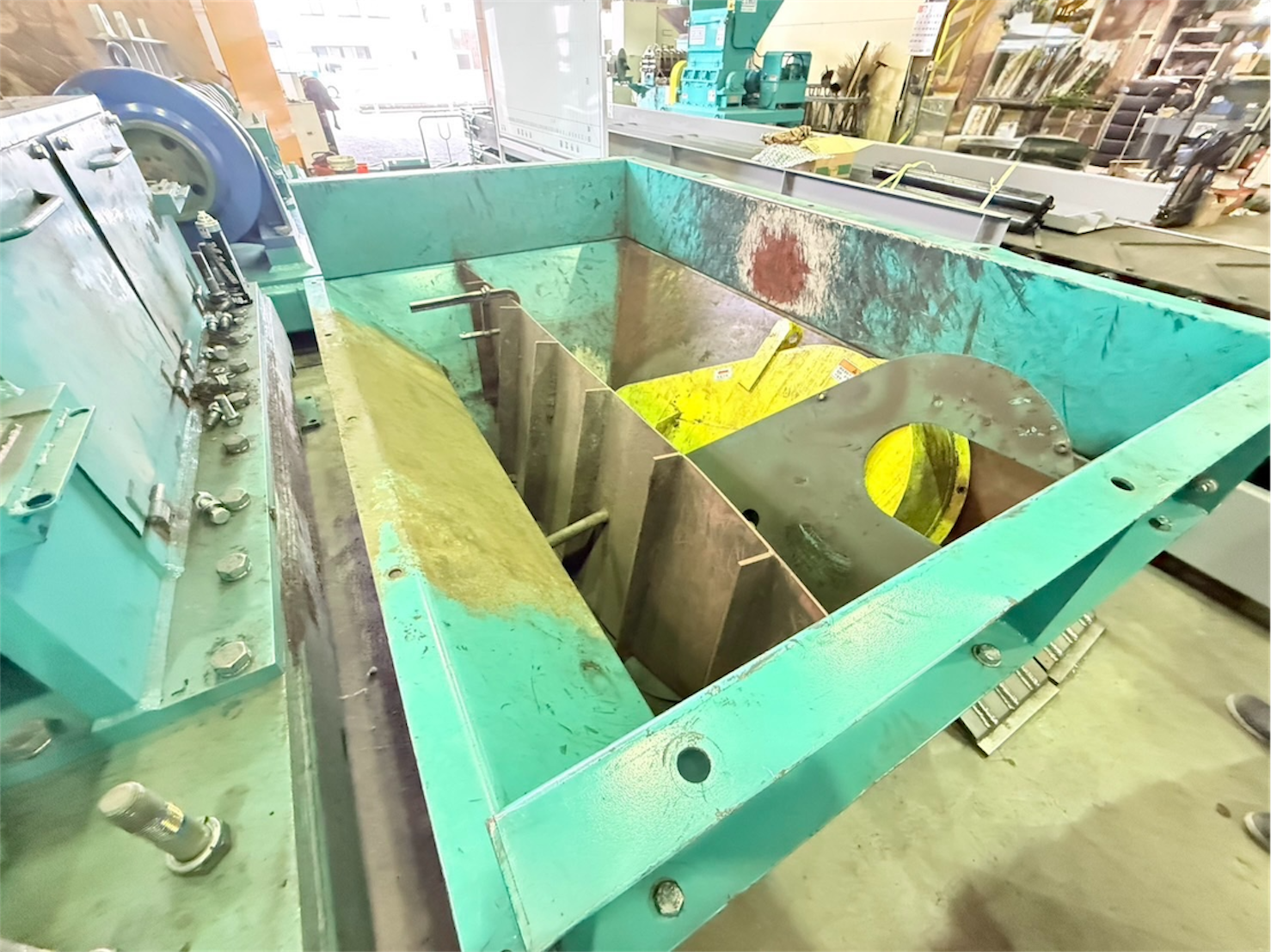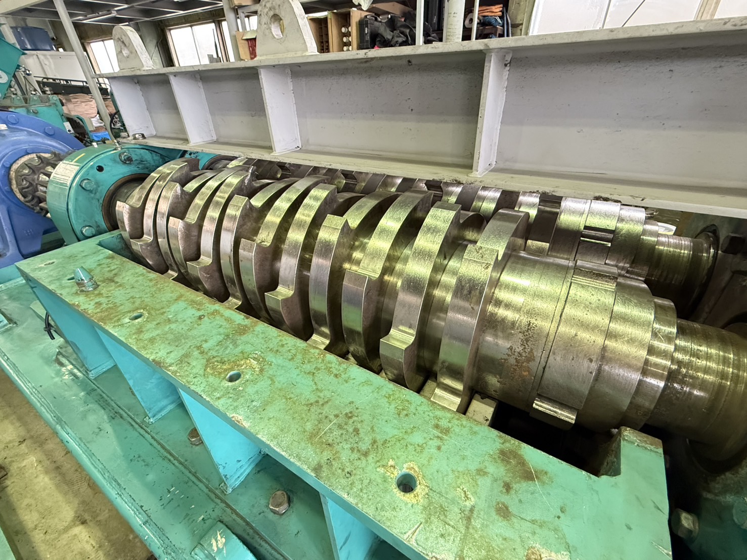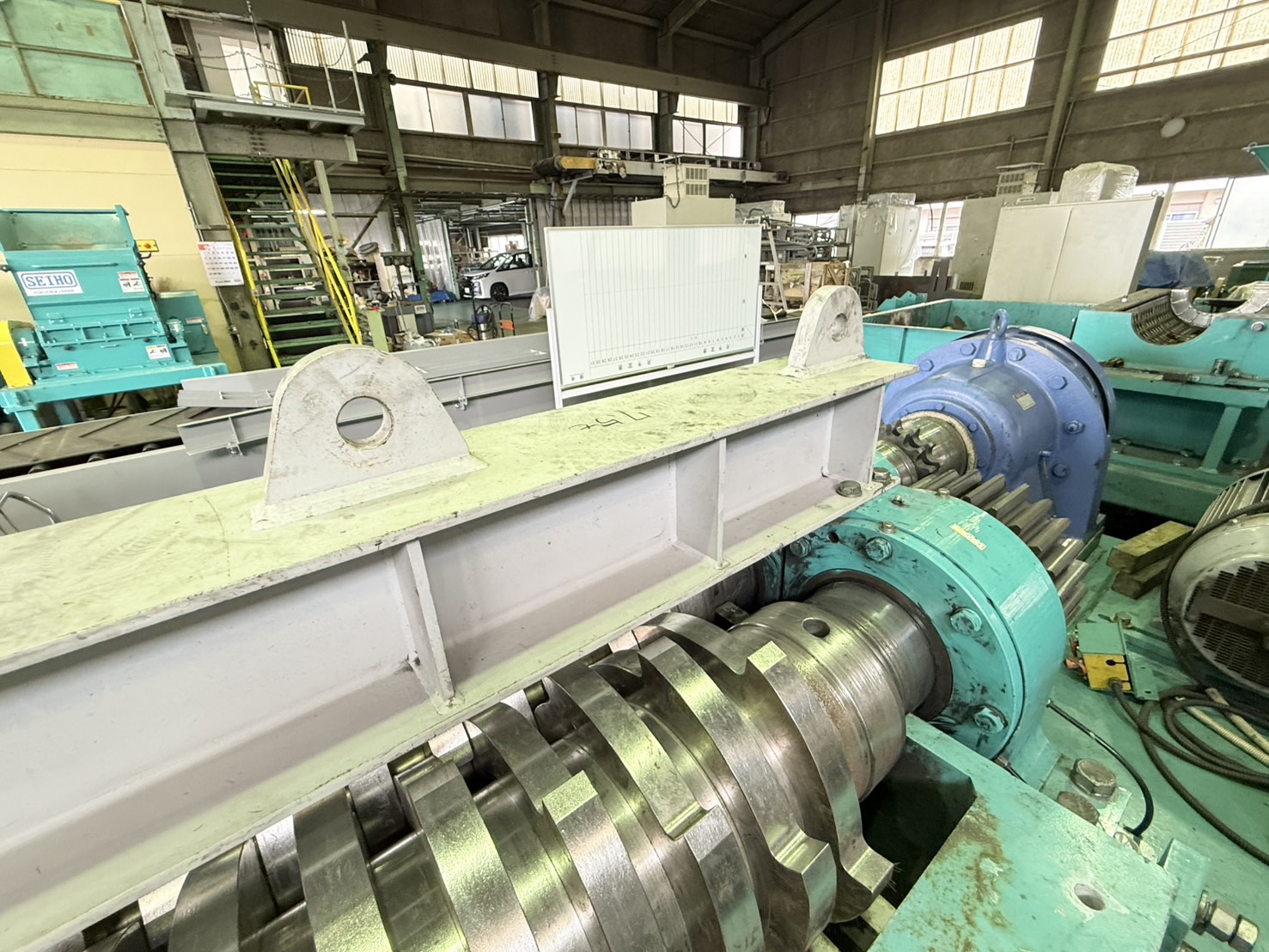 ・メーカー:西邦機工 ・商品名:二軸破砕機 ・型番:SWC-75-3 ・年式:2008年11月 ・電源:三相 200 v(6 P) ・周波数:50/60 Hz ・動力:75 kW×1 基(100 HP) ・主軸最高回転数:20 rpm ・回転刃サイズ:t 50×Φ 500 mm ・回転刃:12 枚×2 列 ・付属品 ①投入ホッパー ②制御盤システム ③架台 等 ・機械寸法:W 4530×D 2260×H 3800 mm ・商品重量:17 ton