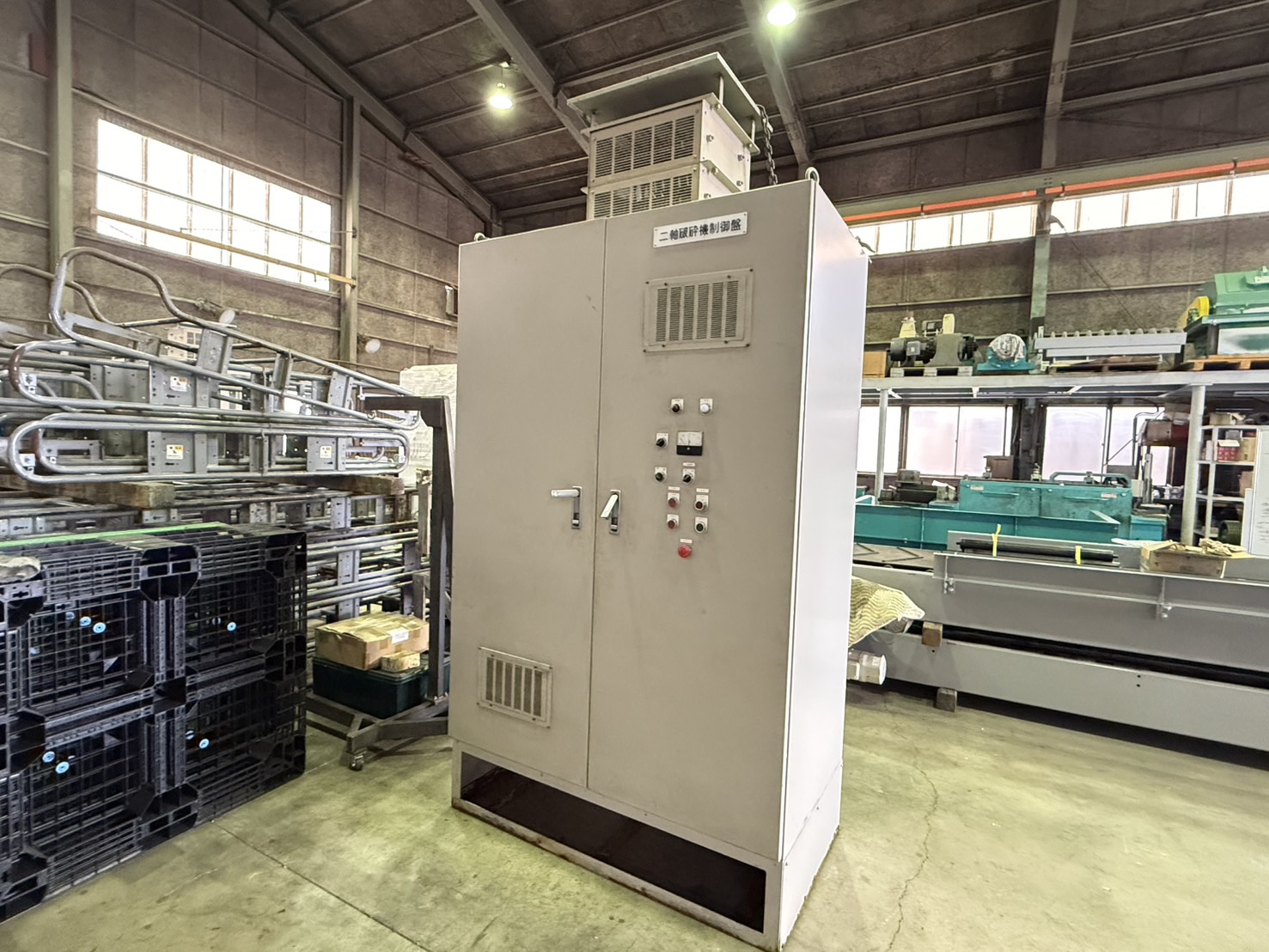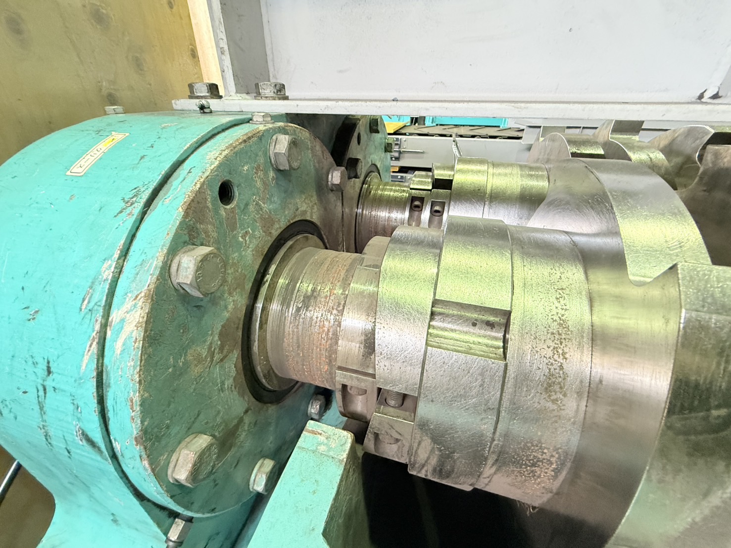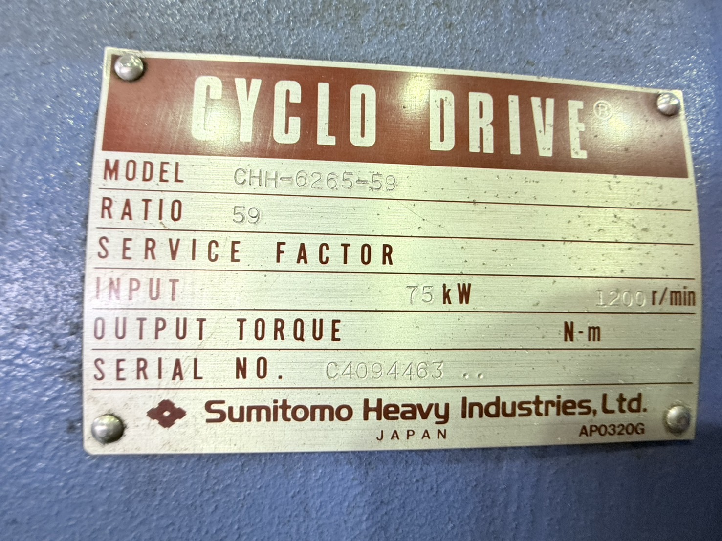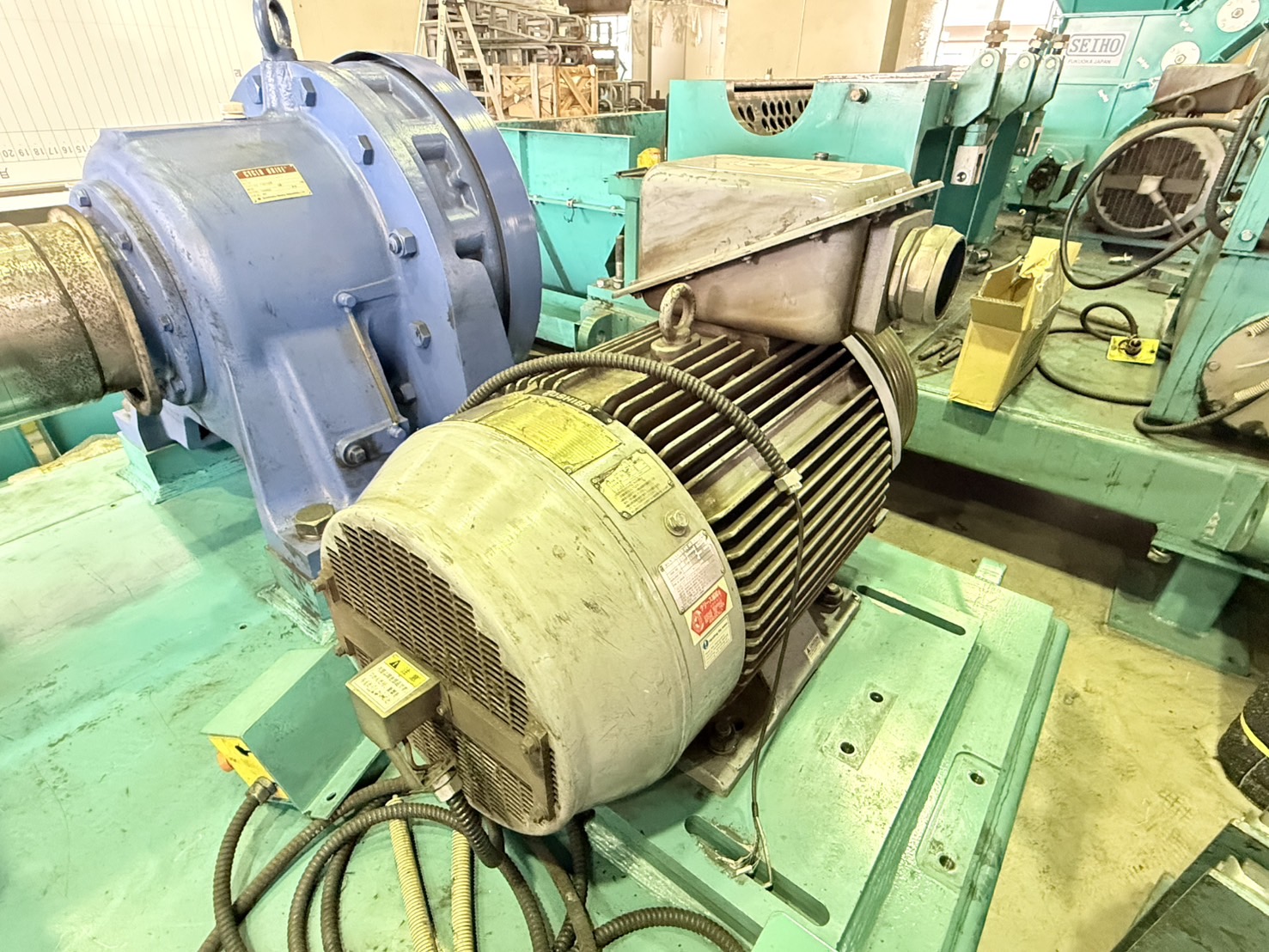 ・メーカー:西邦機工 ・商品名:二軸破砕機 ・型番:SWC-75-3 ・年式:2008年11月 ・電源:三相 200 v(6 P) ・周波数:50/60 Hz ・動力:75 kW×1 基(100 HP) ・主軸最高回転数:20 rpm ・回転刃サイズ:t 50×Φ 500 mm ・回転刃:12 枚×2 列 ・付属品 ①投入ホッパー ②制御盤システム ③架台 等 ・機械寸法:W 4530×D 2260×H 3800 mm ・商品重量:17 ton