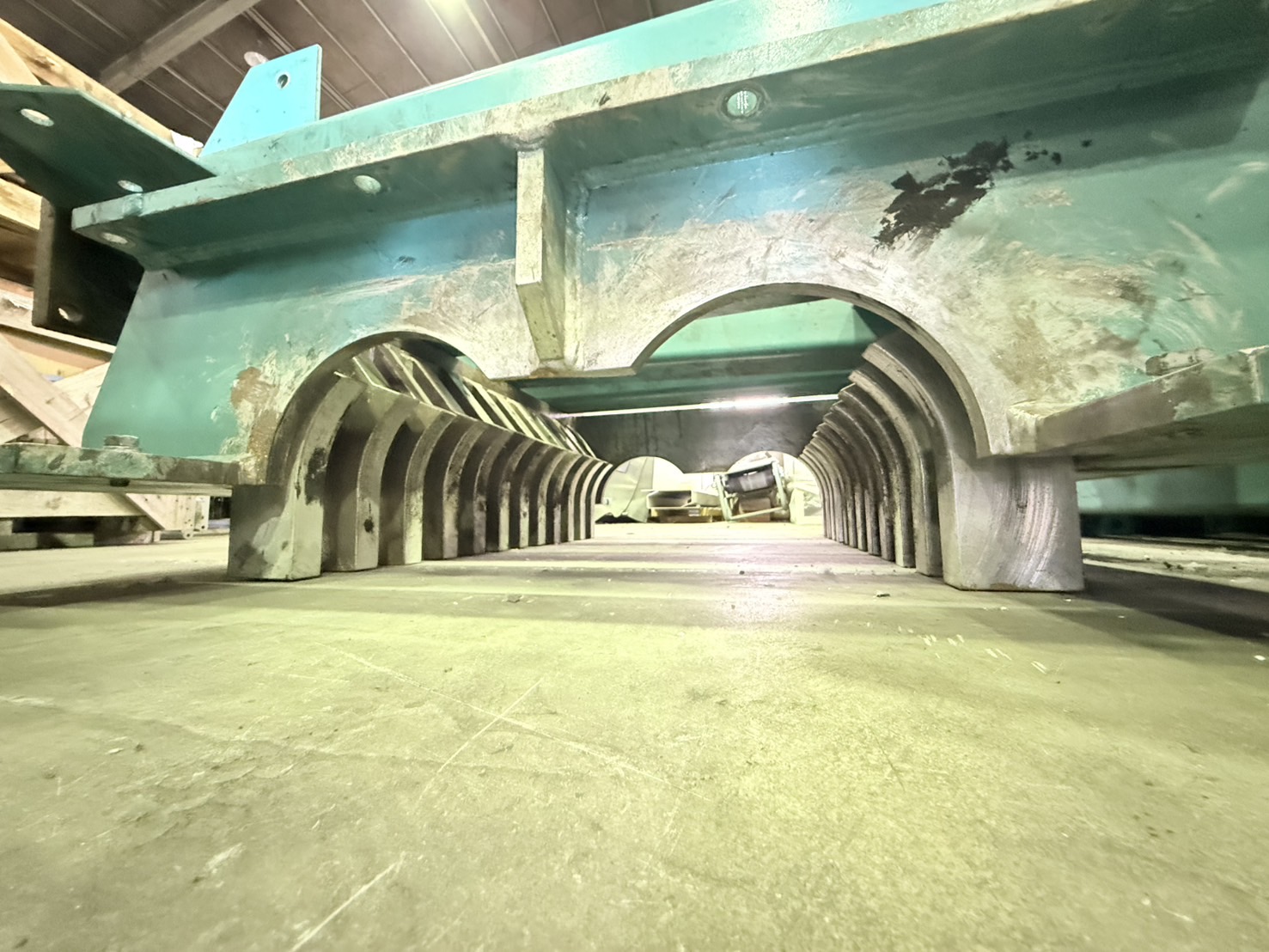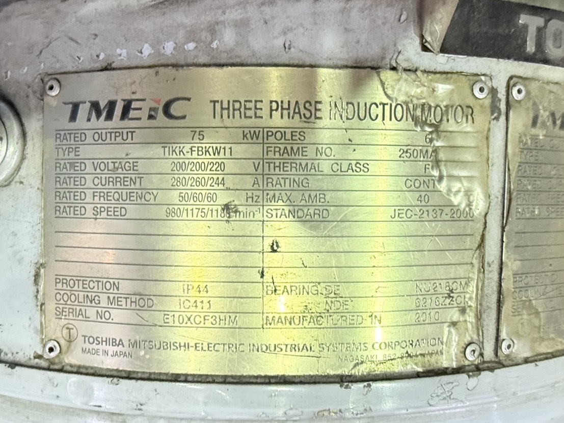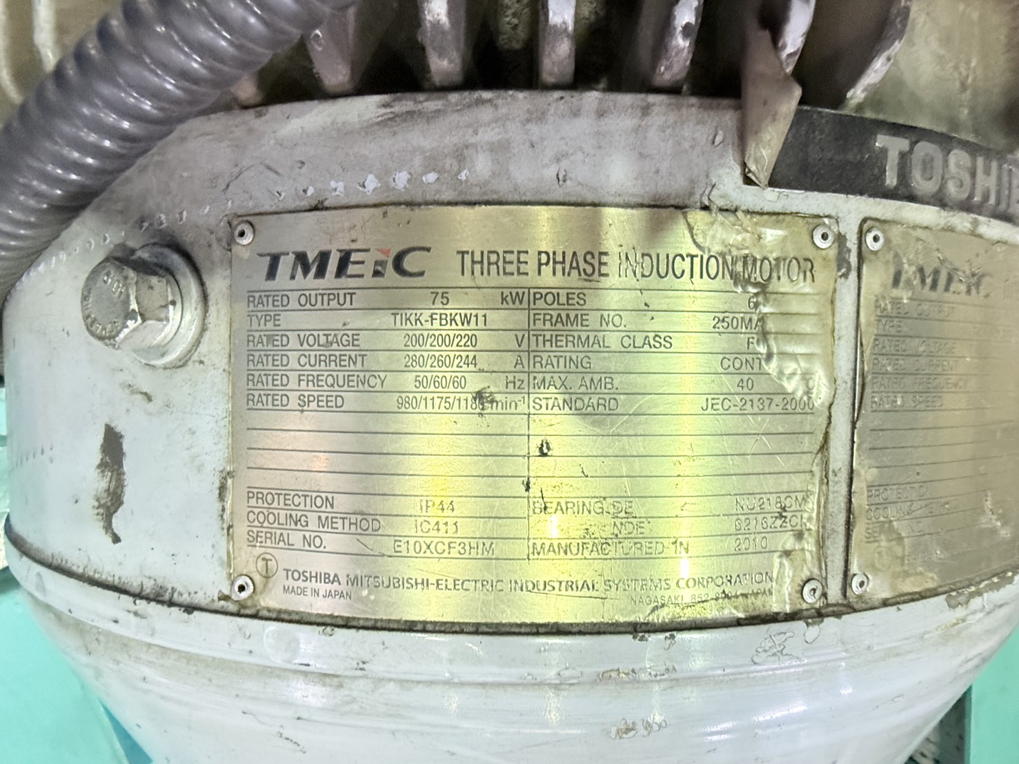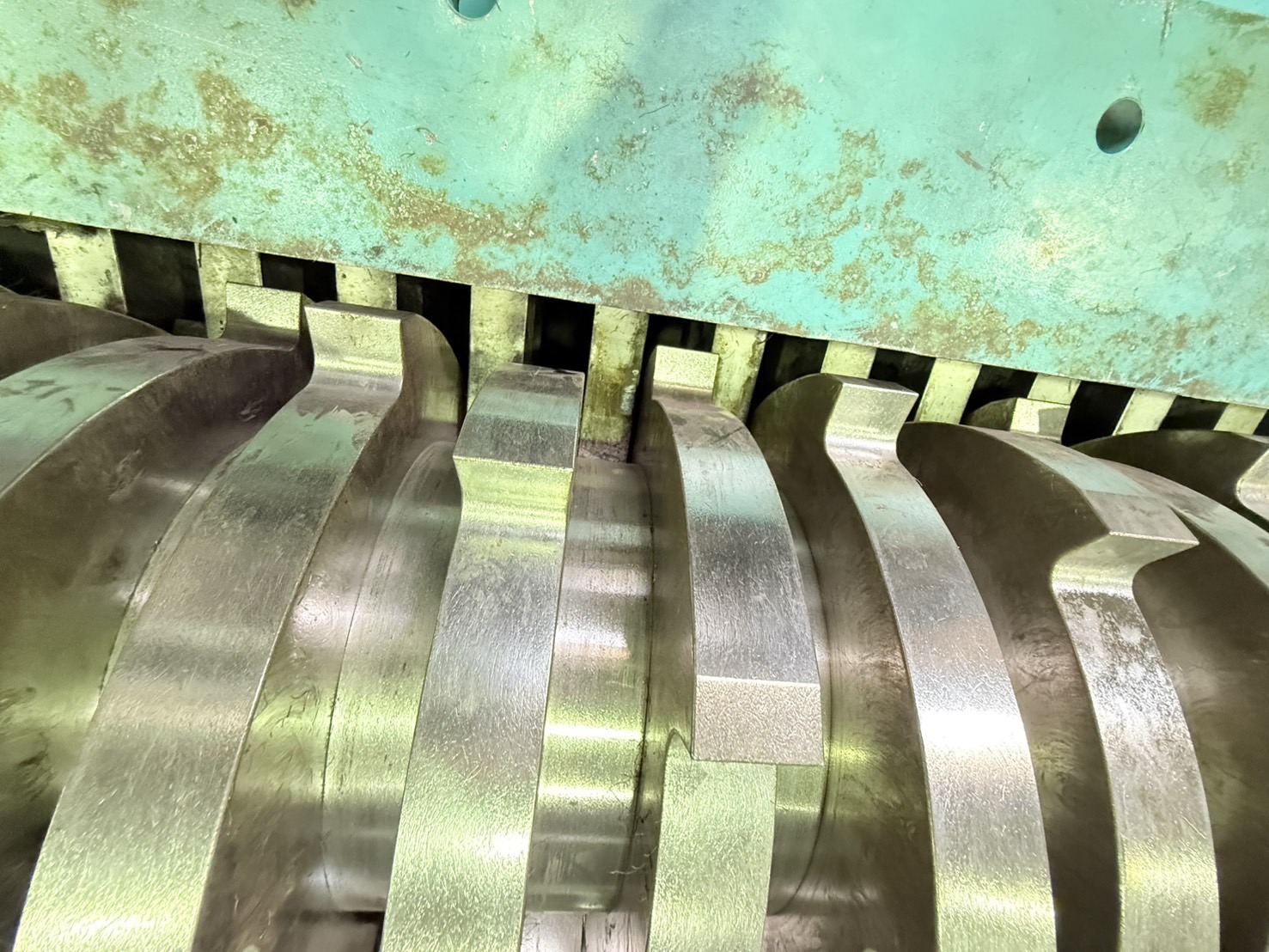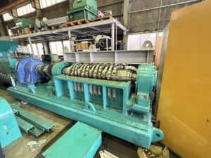 ・メーカー:西邦機工 ・商品名:二軸破砕機 ・型番:SWC-75-3 ・年式:2008年11月 ・電源:三相 200 v(6 P) ・周波数:50/60 Hz ・動力:75 kW×1 基(100 HP) ・主軸最高回転数:20 rpm ・回転刃サイズ:t 50×Φ 500 mm ・回転刃:12 枚×2 列 ・付属品 ①投入ホッパー ②制御盤システム ③架台 等 ・機械寸法:W 4530×D 2260×H 3800 mm ・商品重量:17 ton