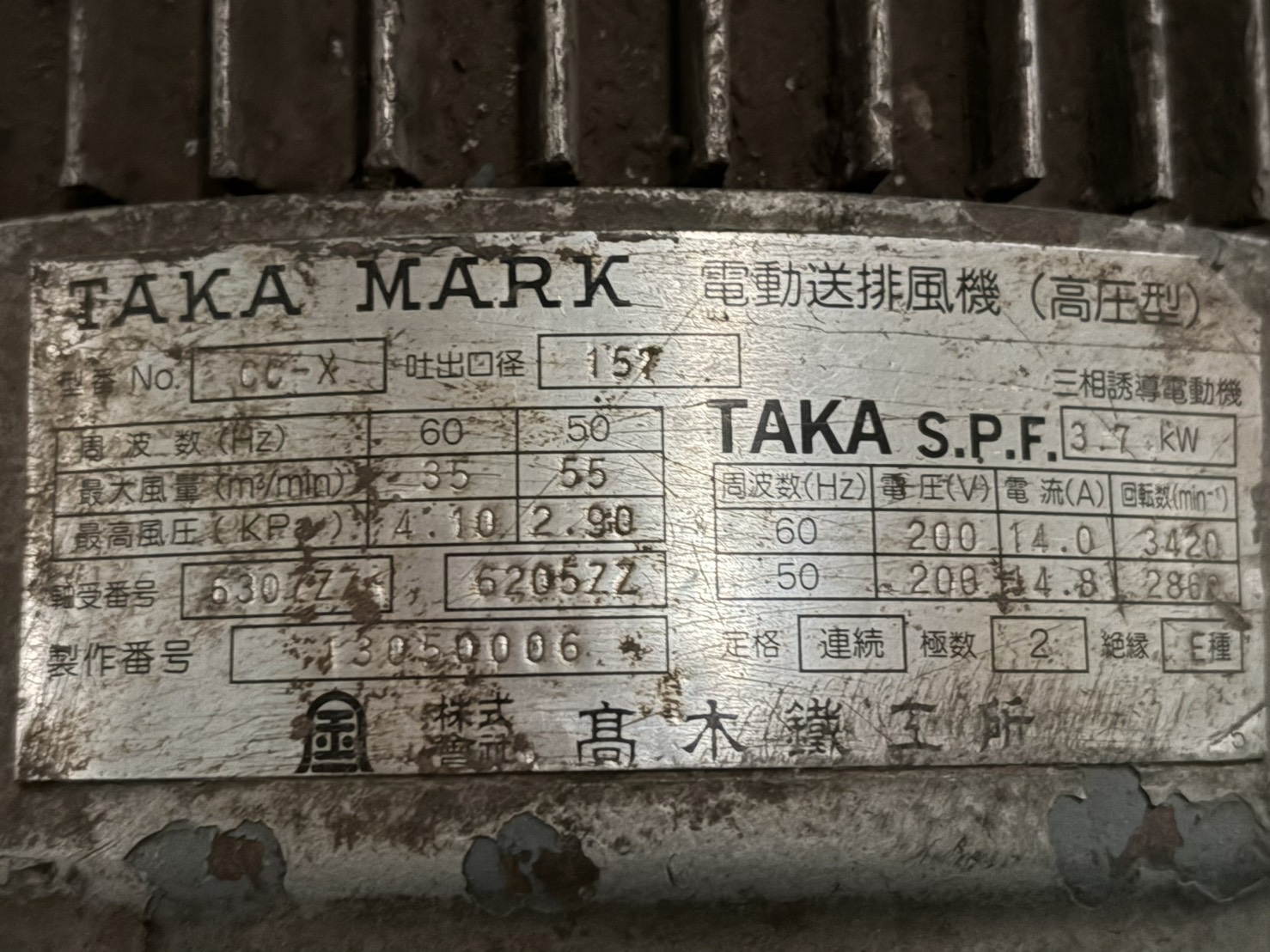 > <高木鐵工所>電動送排風機(高圧型)リングブロワー CC-X 3.7 kw