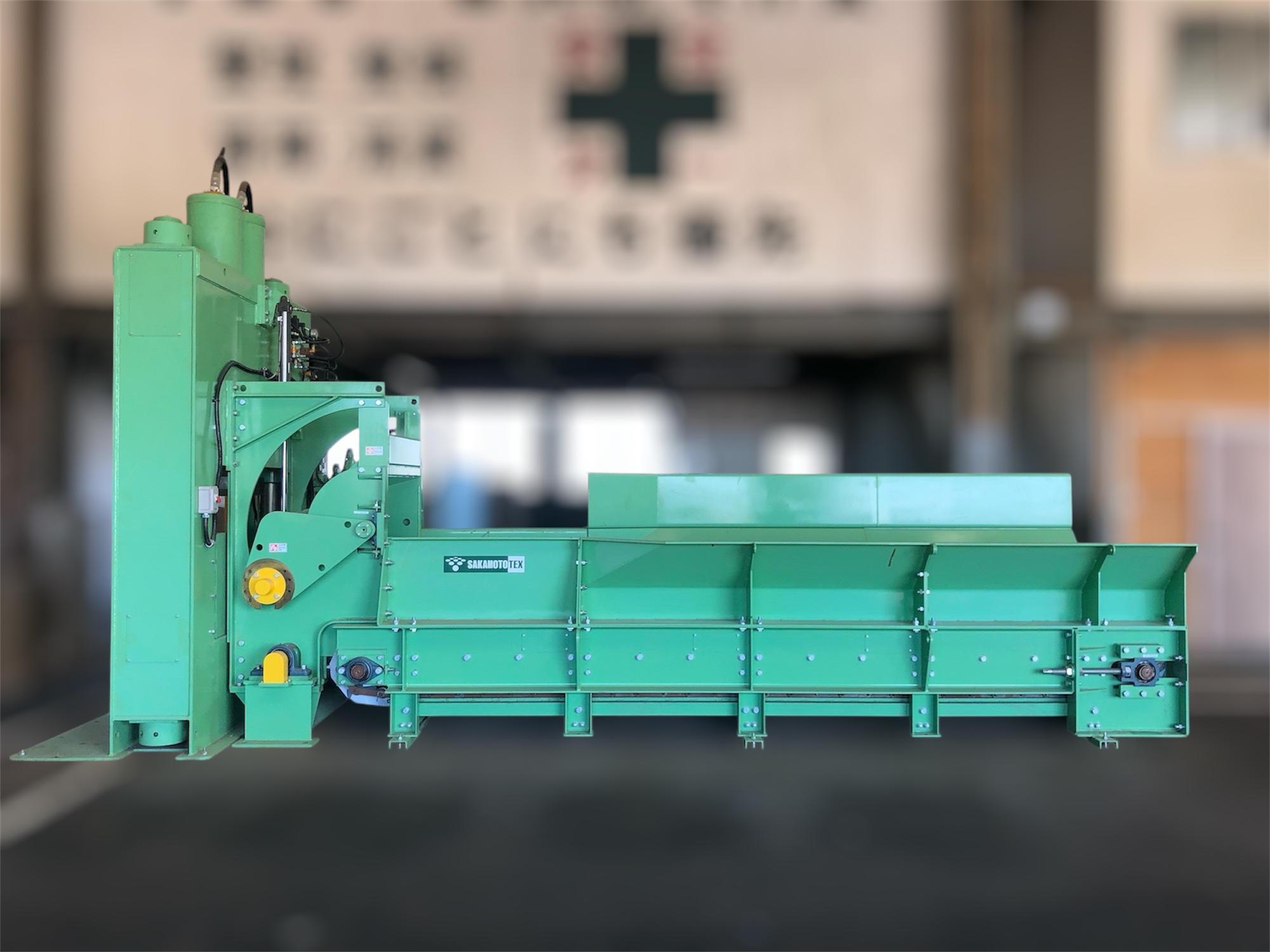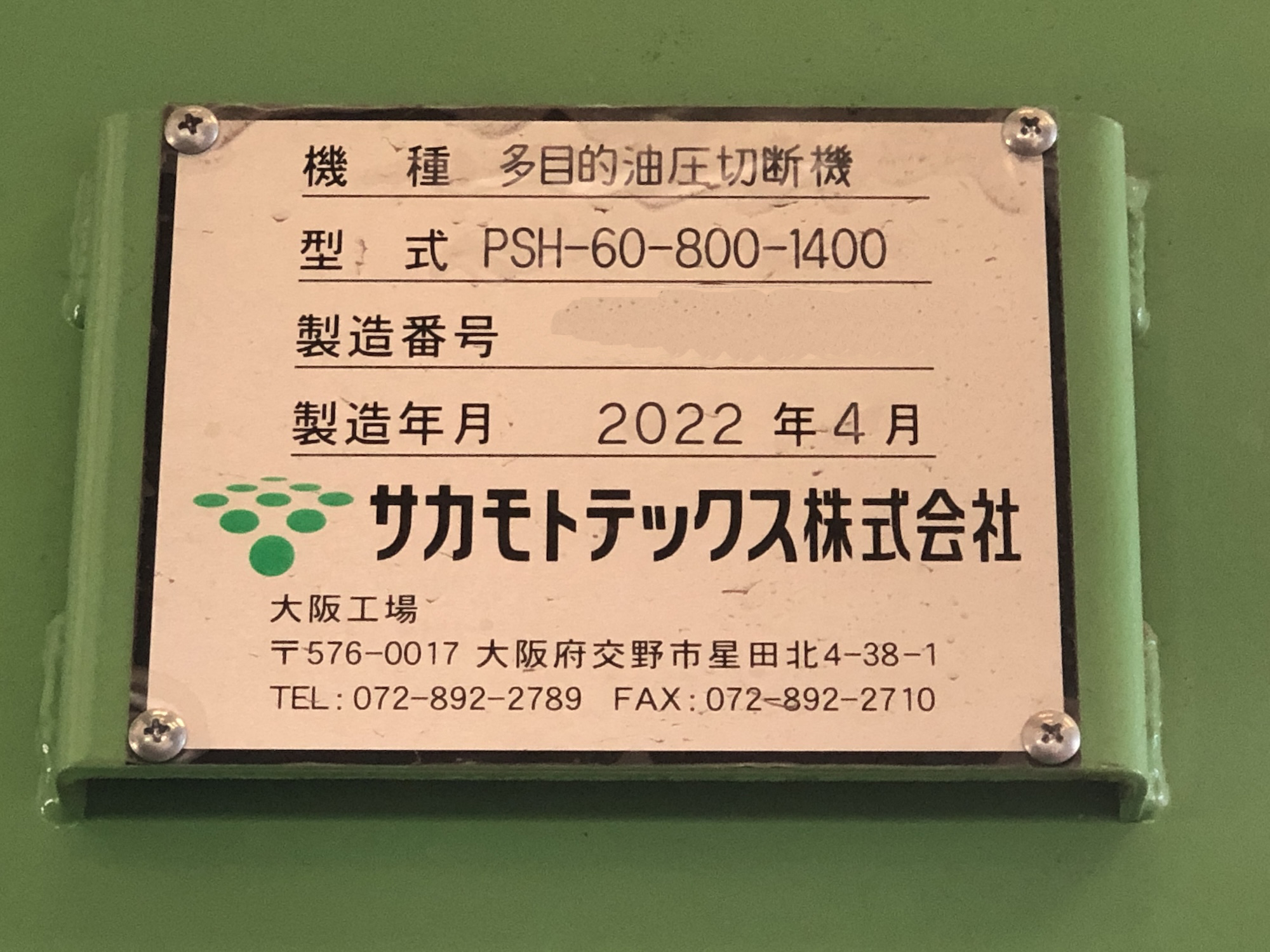 ★新古品★<サカモトテックス>多目的油圧切断機(送りコンベア付き)PSH-60-800-1400 2022年式